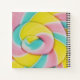Spiral notebook with a yummy photo. A macro photo of a lollipop. Blue pink and yellow pastel colors in a spiral pattern.