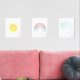 This sweet print set features my hand drawn rainbow, sun and clouds.