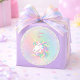 This sticker has an enchanted unicorn with a flowing multicolor mane on a soft watercolor rainbow wash with sparkle accents. This whimsical fantasy design creates a magical look for a girl’s birthday celebration.