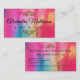 A colorful and classy rainbow colored business card featuring a watercolor paint pattern in pastel colors of pink, blue and gold. There are also decorative golden metallic jewels on both the front and the back. This elegant and luxurious card would be very suitable for an event planner, wedding planner, art school, art teacher, or for whatever else you wish.