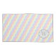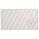 Lines of rolling waves make a simple and fun pattern in a rainbow of pastel colors from pink to lavender creating a cute pattern for spring. Customize the initial on this pillow case to create some cute, personalized linens for your home.