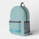 This personalized backpack has a retro chess board pattern with chess pieces and an atomic symbols chess board. Personalize with your name. A great chess pattern perfect for any mid century modern lover or chess lover. You can make the chess pattern larger or smaller on the backpack. Lots of lovely retro pastel colors in blues, pinks and greens. Or take off the color blocking and name for bulk order for a small store order.