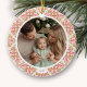 Send warm wishes wrapped in festive charm with this round ceramic customizable photo ornament featuring a hand-drawn ornament-inspired border in cheerful red, green, and pink tones. The central photo frame is perfect for showcasing your favorite family moment, while the customizable date makes it uniquely yours.
