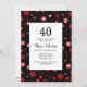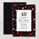 Pastel Ruby Cranberry Polka Dot Black 40 Birthday Invitation