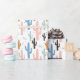 Gift Wrapping Paper | Saguaro Cactus pattern in pastel southwest colors ; country blue, coral blush, country green, charcoal, and rust - This is Part of a Christmas Llama Coordinated collection.