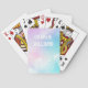 Playing cards with your name or custom text in a bold sans serif font on a pastel colored sky background with clouds.