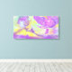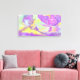 An abstract artwork of purple, pink and yellow shapes and designs, printed on a glossy stretched canvas. --- Artwork is copyrighted by the artist, Christina Spiegeland.