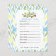 Pastel Squirrel Baby Boy Shower - Wishes Baby Shower Game Flyer. Look for different size cards (please check size before ordering) and different colors are available. ⭐This Product is 100% Customizable. Graphics and/or text can be added, deleted, moved, resized, changed around, rotated, etc... ✔(just by clicking on the "EDIT DESIGN" area) ⭐99% of my designs in my store are done in layers. This makes it easy for you to resize and move the graphics and text around so that it will fit each product perfectly. 📌 (Please be sure to resize or move graphics if needed before ordering) You can also "TRANSFER DESIGN" on other Zazzle products and adjust the design to fit most of Zazzle items. (button is down on the right side of the page) This design is made with high resolution vector and/or digital graphics for a professional print. 📌NOTE: (THIS IS A PRINT. All Zazzle product designs are "prints" unless otherwise stated under "About This Product" on the left side of this page) The design will be printed "EXACTLY" like you see it on the screen and on the product...so please make sure when you do your changes on the resizing of any of the graphics or text that it fits in the areas correctly and that your spelling and wording is how you like it to be in size, color and font. If you have any questions about the "DESIGN ONLY" or need help please contact me at ✉ siggyscott@comcast.net or visit my store link: https://www.zazzle.com/store/designsbydonnasiggy (Copy and Paste) I'll be happy to help. 📌 ALL OTHER QUESTIONS (shipping, refund, the printing, the product, etc...) please contact Zazzle or the Maker ⭐DIRECTLY⭐. Thank you for the support and stopping by my store - DesignsbyDonnaSiggy. © Donna Siegrist⭐⭐⭐ ZAZZLE promises 100% satisfaction. If you don't absolutely love it, Zazzle will take it back! ⭐⭐⭐ 1-888-8ZAZZLE (1-888-892-9953) Phone hours: Mon - Fri: 9AM - 5PM PT (12PM - 8PM ET)