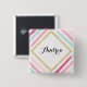 Fun and colorful personalized in button featuring pink, blush and blue watercolor stripes with faux gold glitter accent. This cute pin button will be perfect as a personalized gift.