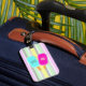 Cute and quirky luggage tag perfect to get you into the holiday mood with ice lollies to personalize with your initials and a stripey background in ice cream colors.