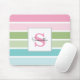 Add a personal touch to your corporate or home office workspace with this customizable mouse pad. Featuring bold stripes in soft shades of pink, green, and blue, this stylish accessory offers a modern and minimalistic look. Personalize this design with a name and initial to create a thoughtful gift for family, friends, or colleagues. Ideal for birthdays, celebrating a new job, or simply adding a feminine touch to your desk. Designed to appeal to women of all ages, this mouse pad combines functionality with a sleek, contemporary aesthetic.