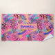Pastel Summertime Flowers Illustration Personalize Beach Towel