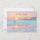 Wedding Card features beautiful elegant pastel colors of the sunset on the beach. Turquoise blue, purple, and orange sunset ombre colors create an astounding blend of tropical shades for a beach, ocean, cruise or sunset wedding theme. Wonderful idea for planning a paradise beach wedding ceremony at an island resort with this lovely design. Mountain silhouette, glistening sunrise sunset at dusk, with gentle waves and beach sand on the ocean shore, perfect for a destination, island, tropical paradise coastal nautical event. Share your coastal hawaii, california, caribbean island or tropical beach wedding.