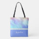 The upper portion has abstract swirls in shades of turquoise, periwinkle blue, lavender, and rose quartz and the lower portion is a solid lavender. Your name is displayed on a light turquoise horizontal band lined with textured rose quartz and white. Just add your information to the text field template provided or click on "Customize" to adjust the font size, type, color, placement, or make any changes you like.