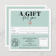 Modern pastel teal blue simple square gift certificate, add your logo, with a rose gold heart. Perfect birthday or Christmas gift certificate voucher.