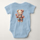 Pastel Teddy Bear Holding Flower Wearing Overalls Baby Bodysuit