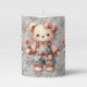 Pastel Teddy Bear Holding Flower Wearing Overalls Pillar Candle