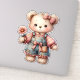 Pastel Teddy Bear Holding Flower Wearing Overalls Sticker