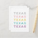 So nice, you want to say it more than twice! This pastel design shows the word "Texas" five times in five colors. Design generally works well on light or dark backgrounds, so feel free to customize to suit your tastes. Perfect for Texas residents and ex-pats who wish they still lived here. Matching products available.