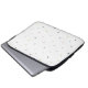 The sleeve is made of nice feeling material and seems very durable. I'm not sure how easy it'll be to clean, but the construction seems sound and the fabric is quick thick. I also like the double zipper. The printing is lovely and appears durable. The white on black contrast is nice, and the design very elegant.