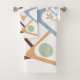 This towel set has a mid-century modern design of rounded triangles with white centers and ovals in the middle. Want different colors? Message me.