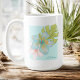 Sip your coffee or tea from this island style mug featuring a bouquet of tropical flowers and foliage in a soft cool pastel color palette. This design features a bouquet of pastel pink plumeria, blue hibiscus and green monstera leaf over a cool minty blue square background. Personalize the text with your name or other desired text. This mug makes a thoughtful custom gift or a great addition to your beach house or summer cottage kitchen.