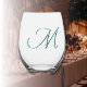 Pastel Turquoise Elegant Monogram Initial Letter Stemless Wine Glass
