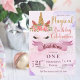Pastel Floral Unicorn Birthday Party Invitation Postcard . Send out these Magical Unicorn Themed Birthday Invitation to your friends and family . The design has a cute pink purple pastel floral unicorn illustration with magical birthday celebration written in gold glitter with party details written in pretty font . The cute unicorn birthday invitation card can be customized fully by changing the birthday girl's name and the milestone year and other details .