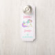 Super cute door hanger lets everyone know that baby is sleeping! Decorated with a pastel unicorn and sprinkle background. Just add your baby's name!