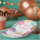 Finish your little one's birthday party decor with these cute dessert themed paper plates, featuring "Happy Birthday [Name]" in pastel lettering, surrounded by watercolor donut illustrations in pink, purple, and aqua.