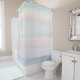 An elegant and pretty pastel watercolor shower curtain with abstract brushstrokes in pink, light blue, and mint green.