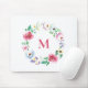 Pastel Watercolor Spring Flowers Wreath Monogram Mouse Pad