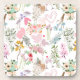 This image is a whimsical and romantic floral pattern. It features a variety of flowers in shades of pink, blue, and white, including roses, tulips, and lilies. The flowers are scattered across a white background, and there are also hearts, birds, and leaves throughout the design. The overall effect is one of love, beauty, and celebration. The delicate details and soft colors create a sense of elegance and charm. The image is sure to bring a touch of romance for whoever in love.