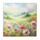 Pastel Wildflower Meadow Landscape Ceramic Tile
