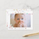 This Pastel Winter Wonderland Photo Birth Announcement design is an adorable pastel sugar plum fairytale, featuring a clean minimalist white background for black and golden brown text with handwritten script, creating a simple and neutral modern style. This classic arrangement is sweetly embellished with cheerful festive garlands of Christmas ornaments and stockings, candy canes, snowflakes, puff balls and stars, with pretty floral bouquets and cute Christmas trees; a unique and colorful aesthetic sure to bring smiles to family and friends for your perfect winter baby shower. As with all of our designs, if you have any questions or would like something special designed for you, please just ask.