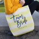 Pastel Yellow and White Stripes Blue Team Bride Tote Bag