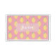 Modern illustrated lemon pattern in pastel yellow on pink personalised tray.