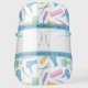 Hair salon face shields with a pattern of hair styling tools in pastels. Add your business name and website or tagline in modern black letters against blue borders.