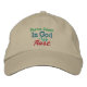 The design was easy to do with a number of options both the hat style, color and so forth. These aren't some printed letters, these are the real deal stitching. The two hats arrived quickly. I've used Zazzle in the past for shirts a number of times and this is the first time for a hat. Zazzle is absolutes the best in every respect; customer service, product selection and results. The embroidery was just right. My artwork was turned into a professional look thanks to Zazzle.