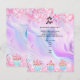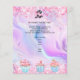 Personalize and add your business logo, name, address, your text. Blush pink, purple, blue pastels holographc bacground decorated with confetti and cupcakes.