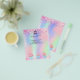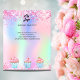 Personalize and add your business logo, name, address, your text. Blush pink, purple, mint green, holographc bacground decorated with confetti and cupcakes.