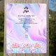 Personalize and add your business logo, name, address, your text. Blush pink, purple, blue pastels holographc bacground decorated with confetti and cupcakes.