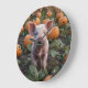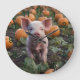 **"Patch of Joy: A Happy Baby Pig Among Pumpkins"* Large Clock