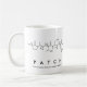 Patch spelled out in amino acids as P A T C H (Proline Alanine Threonine Cysteine Histidine) on a mug for the scientist in you.