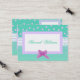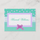 Colorful children's calling card / enclosure card, with polka dots and stripes, in teal, white, and lavender. Customize the text areas to personalize for your child. Makes a whimsical business card too.