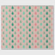 A pretty patchwork Christmas tree design in dusty pink with white dots and Christmas trees in shades of teal, turquoise and pink.