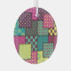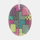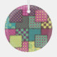Stitched patterns create a lively patchwork background. Delightfully unique and charming decor.