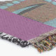 A quality printed throw has its advantages. This is a much finer weave throw than its loopier cousins, and though lighter, it is worth the investment for custom room accessorizing. The back is much prettier than the typical brown, and the fringe on the long sides very vivid, the selvage nicely done. Before photographing, I washed the throw in cold water, delicate, with a thicker woven throw the same size. On tumble dry low, this throw was dry in half the time as the other. This is a very practical quality if you use throws for furniture covers or to wrap up in frequently. The sleekness of the fabric makes it a great layer for accenting or protecting without the feeling of sitting on too much stuff. Perfect for napping or when you feel a light chill coming on. The color printing is beautiful and on this fabric, matched the design and color of my Photoshop image. This is an advantage for blending room fabrics and colors. The fringe on the short sides prints the colors from the design image and therefore varies from the side fringe. I streaked a white fractal line through the plaid pattern to give the illusion of weaving. This printed as crisp as an illusory thread, and put some white in the short side fringe, showing another advantage of print vs loomed- for artistic purposes, line lines, detail, and color integrity can be planned and preserved. My loomed throws have color limitations and more of a needlepoint texture. Print throws reproduce an exact image. The throw felt a little stiff straight out of the package, but this went away in the first delicate wash. Of course I searched the wash water for ink or bleeding and there was none.