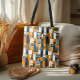 Patchwork Geometric Autumn with Orange and Blue Tote Bag