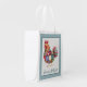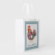 Cute chicken themed grocery bag that is perfect for the store or famer's market and personalized with your name or other text. Hen is created in a colorful patchwork patterned design with a tiny polka dot frame in blue. So other coordinating kitchen items in this same collection.